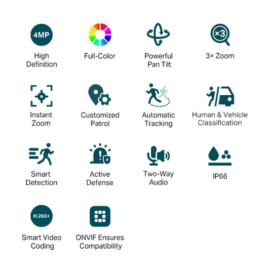 VIGI 4MP Outdoor Full-Color Dual-Lens Varifocal Pan Tilt Network Camera : VIGI C540V